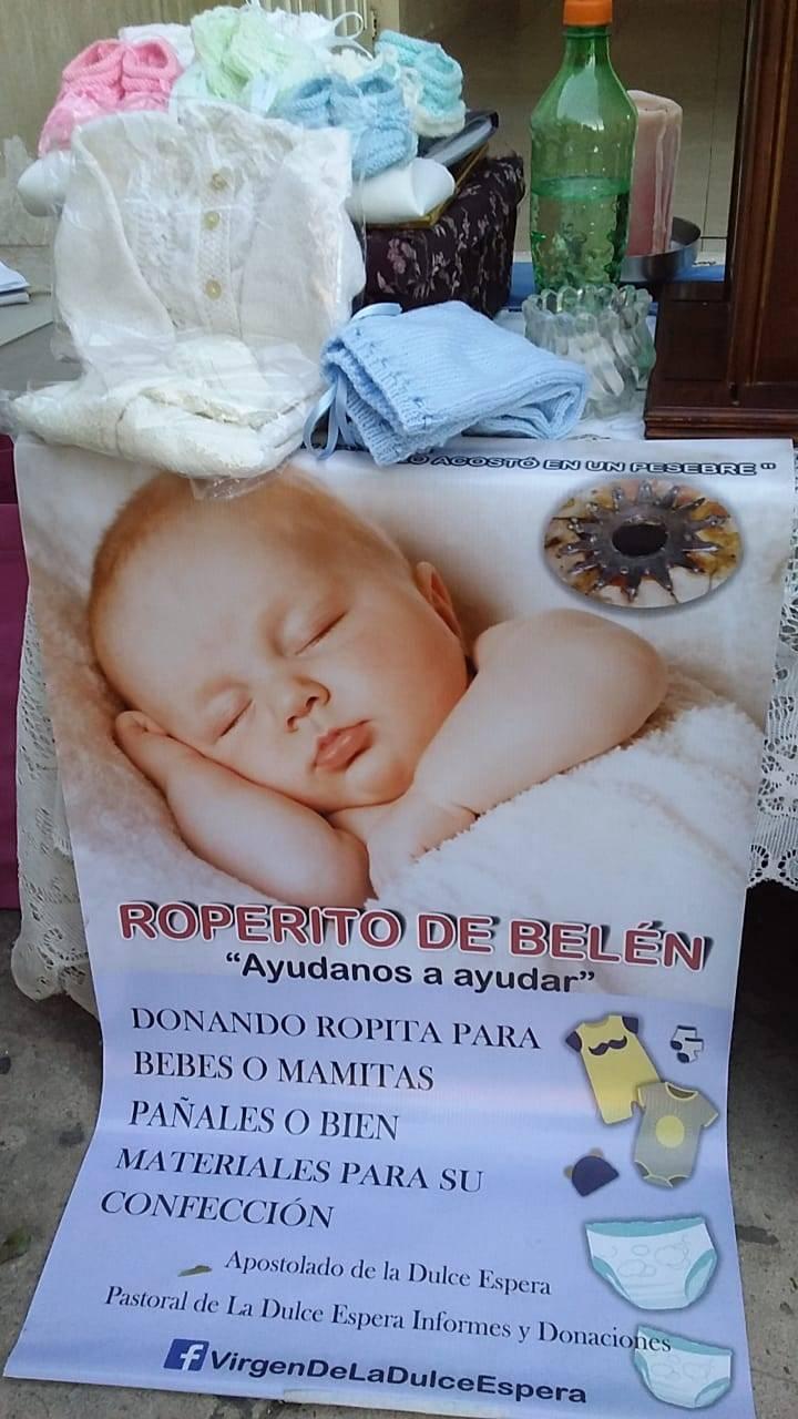 Esta iniciativa de oración, que se lleva adelante en varios países, sobre todo de Latinoamérica, ofrece además aquí en Corrientes, la oportunidad de ser solidarios ya que se reciben donaciones de ropas para bebes, ropa para mamás, leche, pañales o materiales para confeccionarlos. Los miembros del apostolado de la Dulce espera llevan adelante el “Roperito de Belén”, que reúne aportes que luego son entregados a las madres que lo necesiten.
