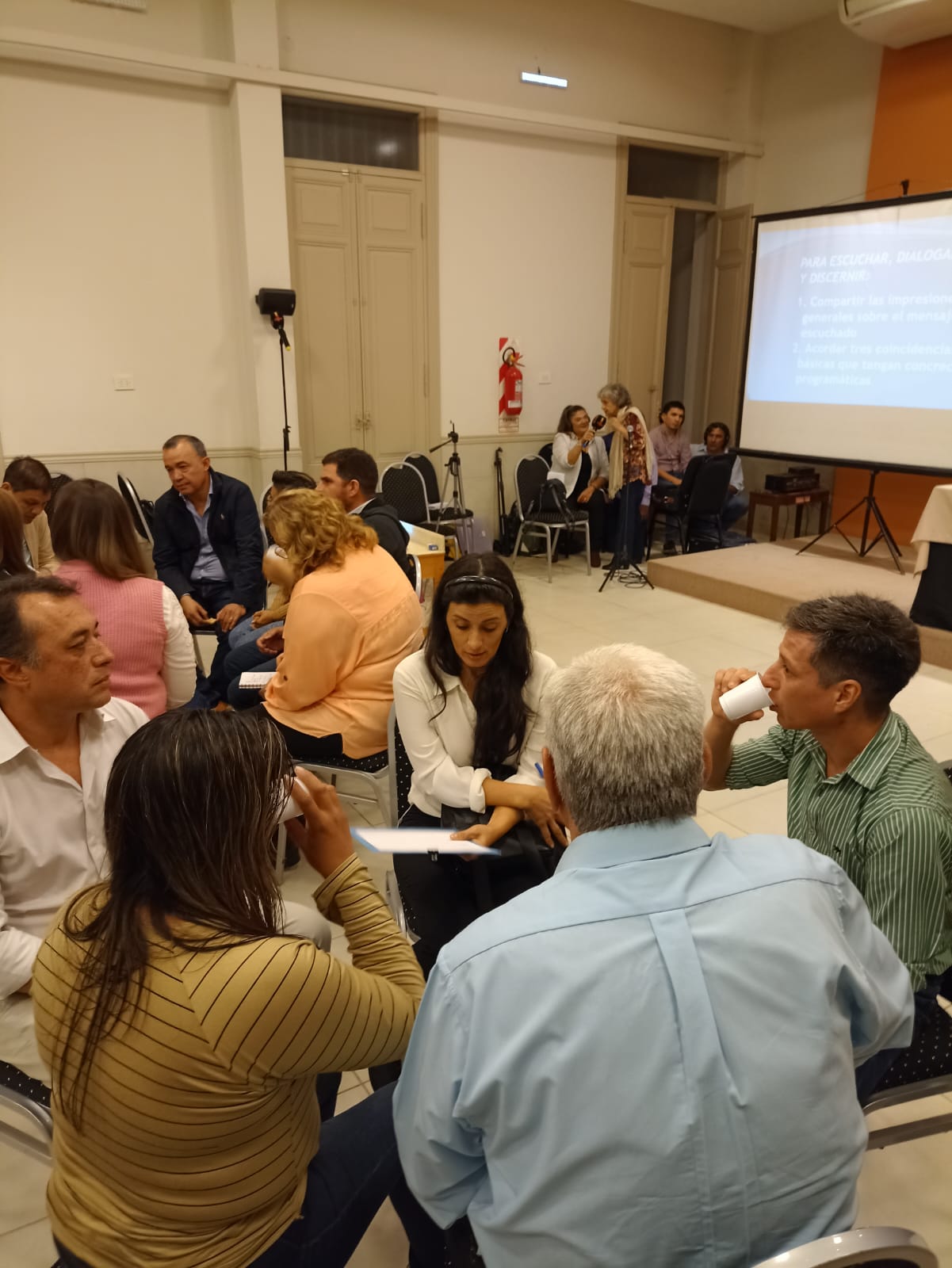 Luego de la escucha del texto, se invitó a los candidatos a formar grupos para dialogar sobre sus resonancias ante lo expresado. De forma amena, distendida y en la búsqueda de puntos en común expresaron sus miradas, sus puntos de vistas sobre la realidad planteada y sus anhelos, desde el lugar político en el que cada uno está parado.
