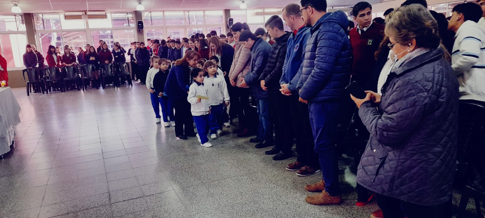 Los niños del Jardín El Conejito Azul entregaron tarjetitas con dibujos y el Secundario medallas de San Benito a los participantes del encuentro, así como representantes de Radio San Cayetano, uno de los tantos medios locales que colaboran a menudo en la difusión de la actividad educativa católica.