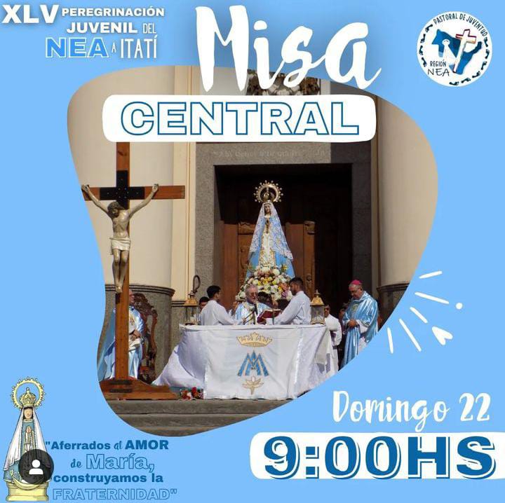 El domingo 22 a las 9, se celebrará la misa central en el atrio de la basílica de Nuestra Señora de Itatí, será presidido por el Arzobispo de Corrientes, monseñor Andrés Stanovnik quien tendrá a su cargo también, la homilía. Como lo hace desde hace muchos años, el Pastor peregrinará junto a los jóvenes.