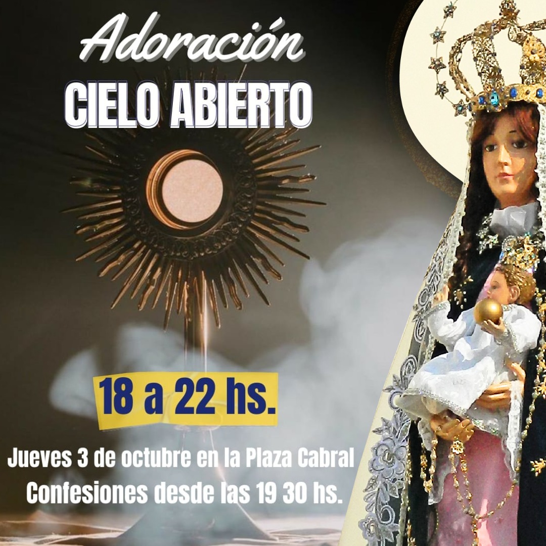 Dentro de las actividades especiales previstas en el marco de la novena, este jueves, de 18 a 22, se realizará una nueva edición de la “Adoración a cielo abierto” en plaza Cabral; allí se podrá rezar ante el Santísimo Sacramento y se administrará el Sacramento de la Reconciliación. En tanto, este sábado, a las 21, habrá un festival en honor a la Virgen del Rosario. El domingo, luego de la Misa de las 20, ser hará un espacio de oración y animación, para esperar juntos el día de la Patrona.