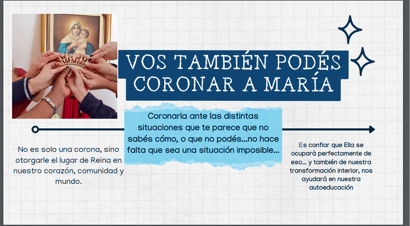 La corona que será colocada a la imagen fue confeccionada por las Hermanas de María en Santa María, Brasil, en el único taller en el mundo en el que se realizan trabajos de Schoenstatt. Llegó a Corrientes en junio, en el marco de una peregrinación organizada por el Movimiento Apostólico de Schoenstatt de la Arquidiócesis correntina, junto a hermanos de Chaco, Reconquista y Formosa.