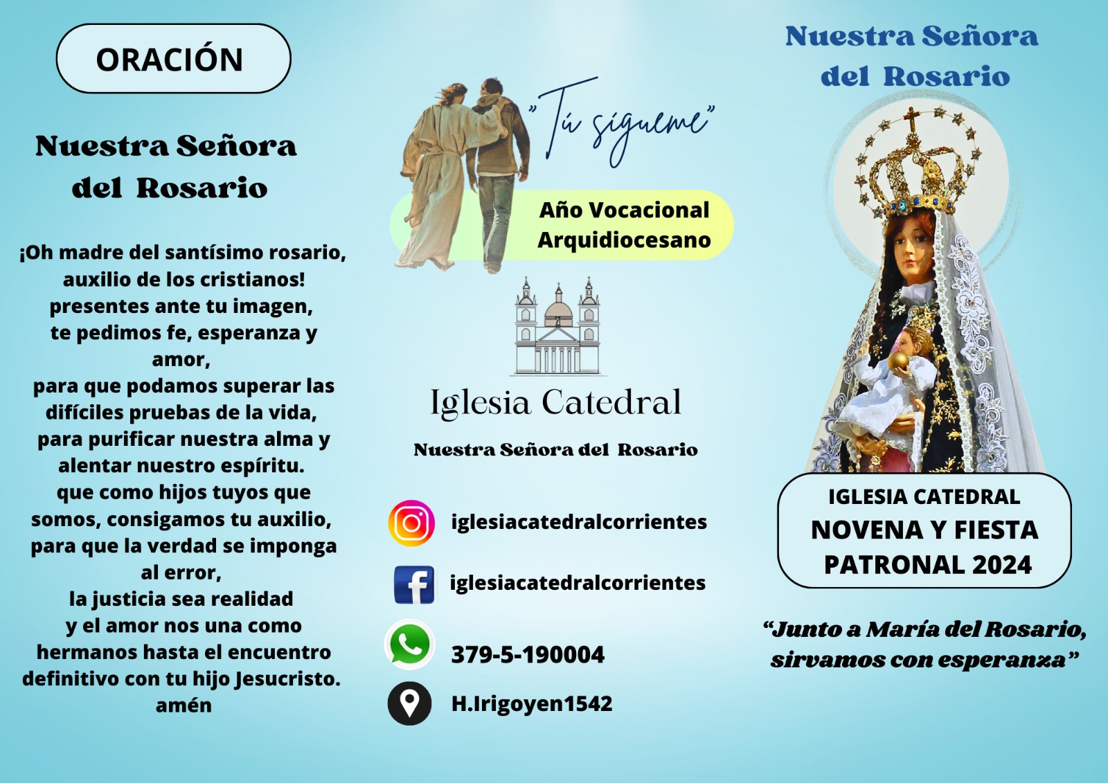 La Iglesia Catedral de Corrientes prepara la fiesta de su Patrona, Nuestra Señora del Rosario. Se reza la novena diariamente y el fin de semana habrá actividades especiales. El Arzobispo presidirá los actos del lunes 7. El lema que ilumina este tiempo especial que vive la comunidad es: “Junto a María del Rosario, sirvamos con esperanza”.